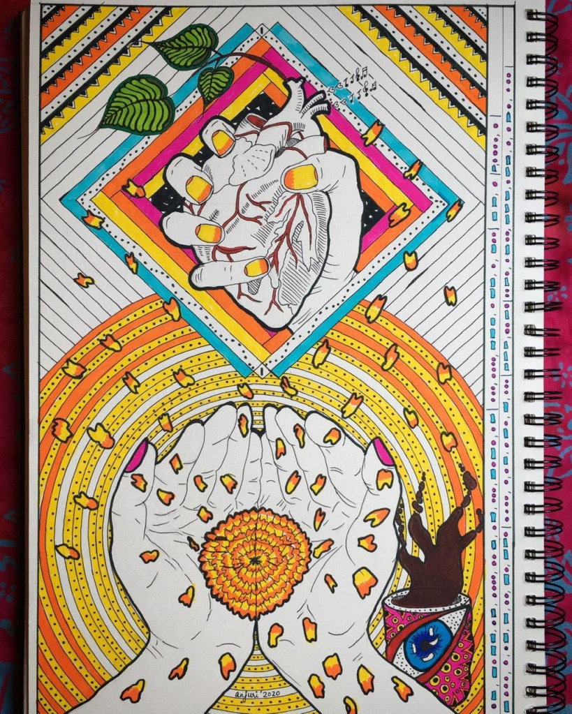 It is very interesting to me that I began Painting, with brushes, water & acrylics on canvas, ONLY ONCE I RE-LOCATED to my hometown, Kanpur in June-July’2020 – gently undoing the damage caused to my soul and expression so many years ago, in the same neighbourhood.