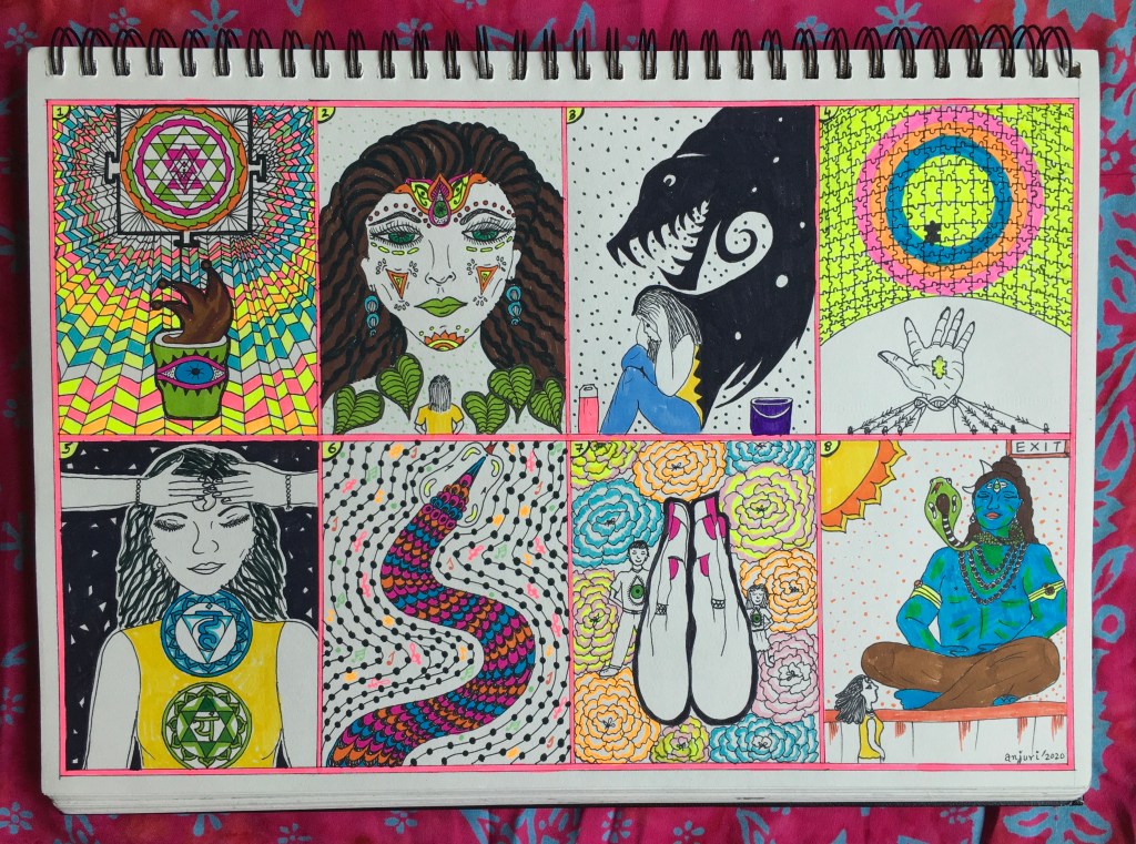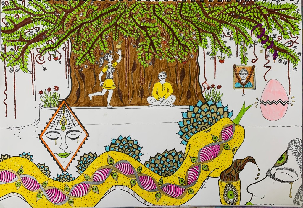 As to the impact this buried memory had in the decades I didn’t remember it actively was that I do not remember painting much after it happened. I must have painted like maybe 3-6 paintings over the next 2 decades, despite loving paints and painting. Nothing of import came out from my hands all through my teenage years. I had no imagination. I could only copy from references – that too with pen and paper. No paints.