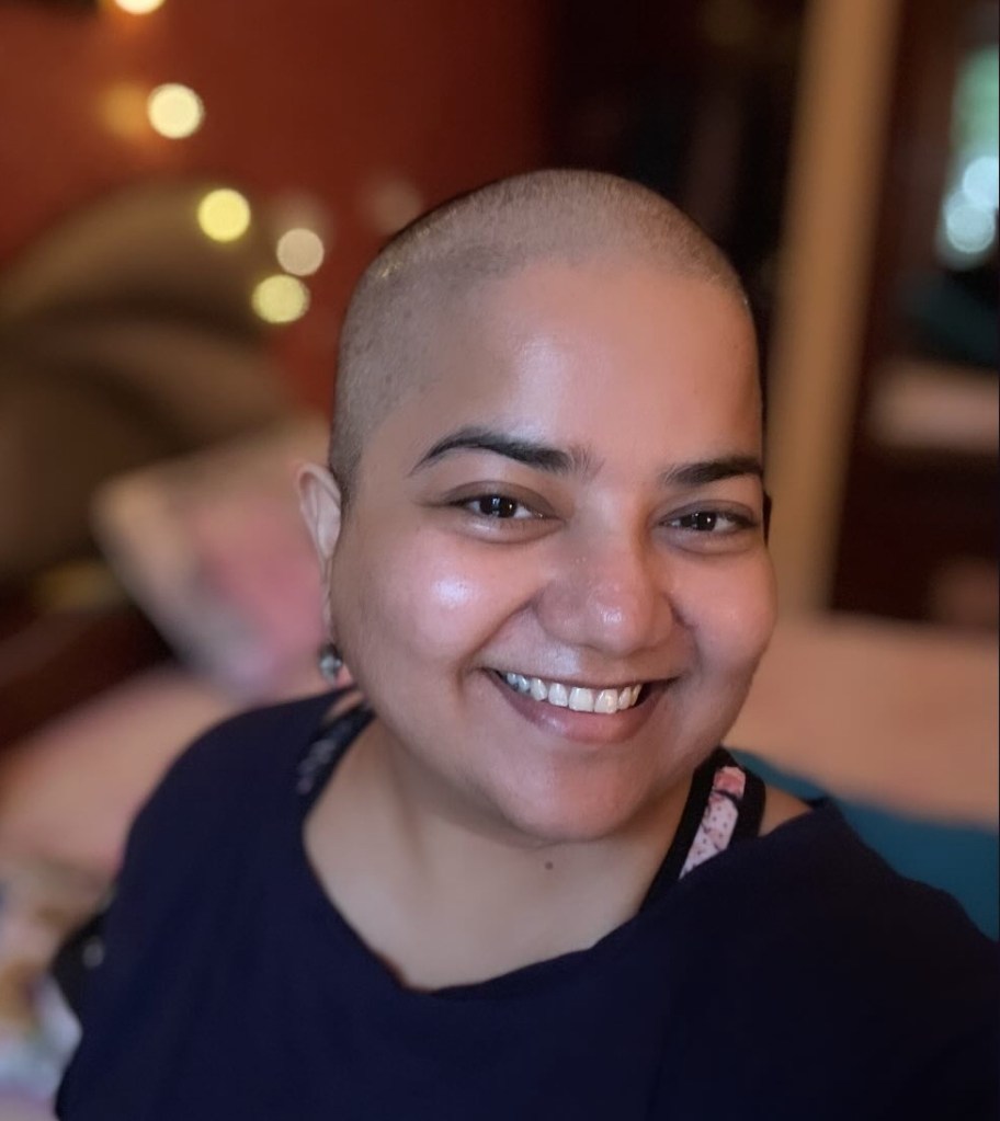 But, I must, rather happily, add this to the above – these ‘type of people’ are a very small fraction of the large group of folks who have been reacting to Me. Mostly, the reactions have been delightful. Strangers slow down their vehicles to check whether they are actually seeing a bald woman walking her dog. On two-wheelers, the pillion seat passengers turn their heads to keep staring at me – so many women keep staring, whether its a doctor’s clinic waiting room, a grocery store, a shopping mall, a hotel lobby, a restaurant – people just simply watch me, not repulsed, not mocking, mostly just surprised and curious. And I simply smile back to disarm them.
